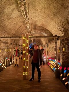 会場となっている八女市のワインセラーは、独特の雰囲気を持つ場所。石造りの空間と竹あかりの光が重なり、まるで幻想の世界に入り込んだような気持ちになりました。